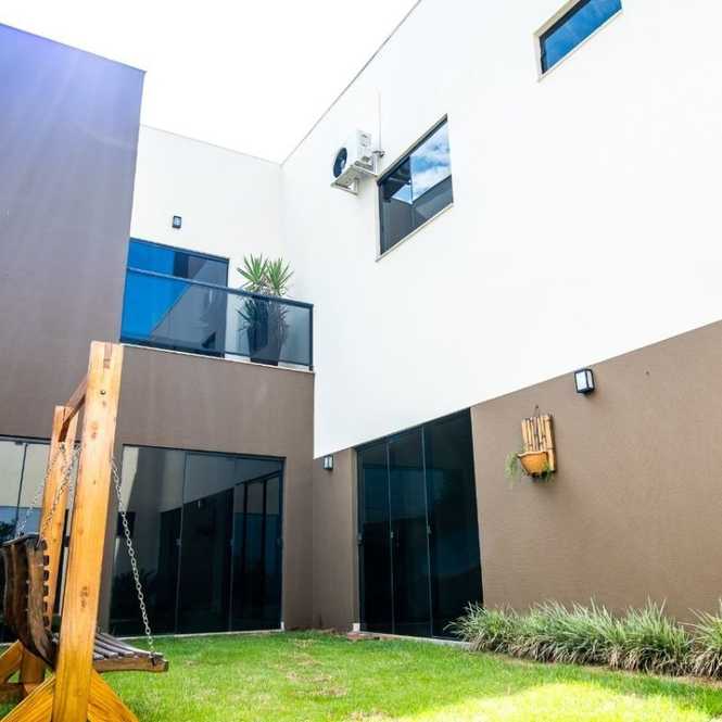 Sendo 3 suítes, suíte máster com sacada, armários e ar-condicionado nos 3 quartos, sala com dois ambientes, 5 banheiros, churrasqueira, sala de tv parte superior, 4 garagens.