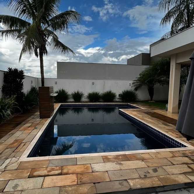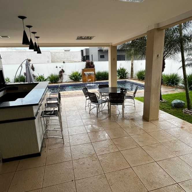 CASA COND. SUN LAKE com 313 metros de construção e 503 metros de terreno, possui 04 suítes, sendo uma Master, (03 suítes em cima e uma embaixo), 05 banheiros, 04 vagas de garagem, piscina, móveis planejados em TODOS os cômodos (até na área de serviço), pé direito alto, ar condicionado em TODOS os cômodos,