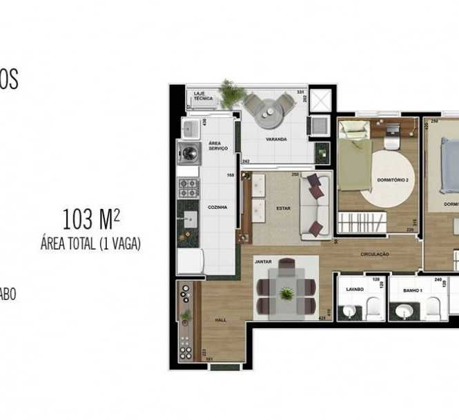 - 103 m2 Área Privativa / Construída - 103 m2