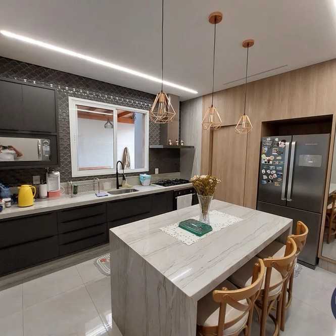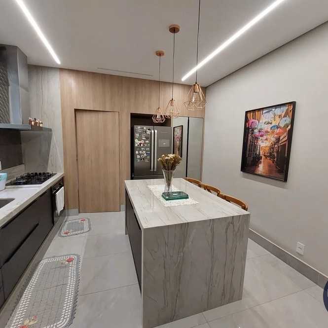 Este projeto espaçoso conta com 3 suítes amplas, lavabo, sala de estar, TV, sala JANTAR e cozinha integrada, dispensa, escritório e depósito isolado! Espaço interno com armários em todos os cômodos. Garagem para 3 carros sendo duas cobertas, E infraestrutura pronto para instalação de Jacuzzi no quintal. Aquecimento solar e sistema de energia fotovoltaica.