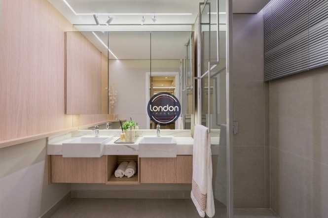 As unidades serão entregues com veneziana motorizada nas suítes; tomadas USB nas suítes e sala; cozinha com ponto de exaustão externa para coifa; duas cubas no banheiro da suíte principal; fechaduras eletrônicas nas portas de entrada social e de serviço; sala e varanda integradas e piso porcelanato.